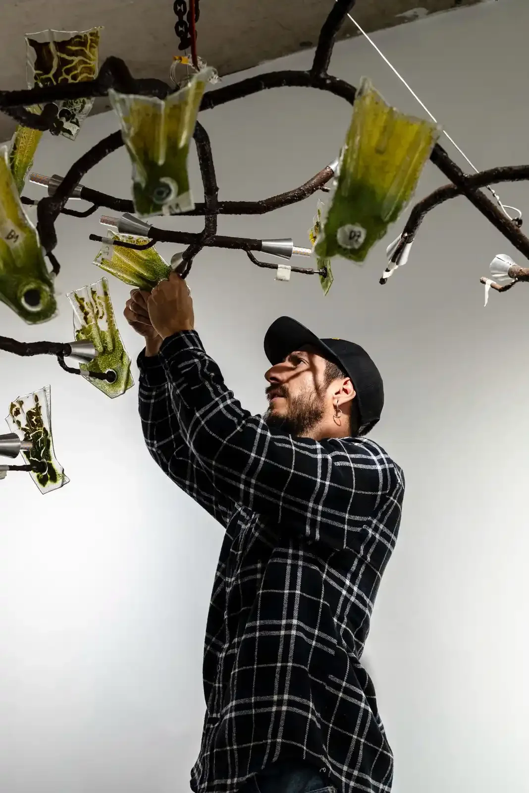 His work is focused on the construction of furniture and utilitarian objects with a sculptural character, where the introspective link between the human, the material, and the piece under construction prevails.